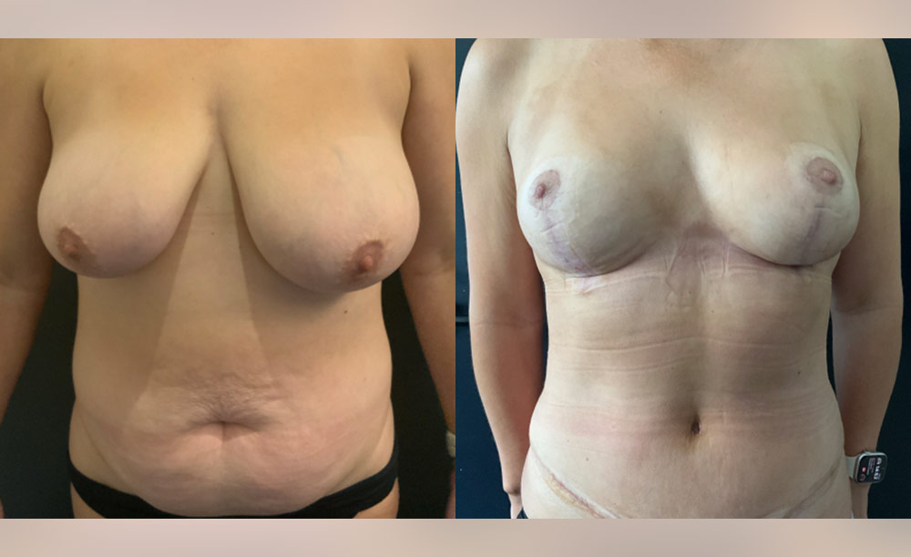 Bilateral breast reduction and abdominoplasty with muscle repair – pre-op & 3 months post-op